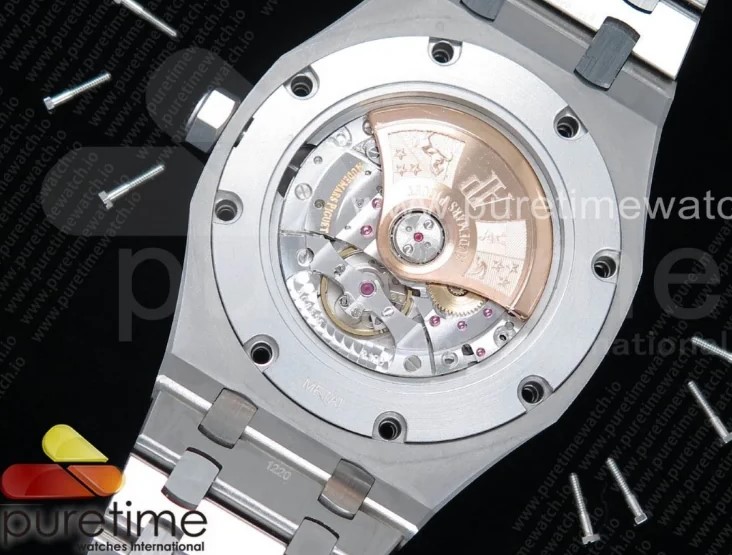 The Miyota 9015 is a reliable workhorse movement, and older / lower end AP 15400 replicas used a decorated version of this movement. However, the clone 3120 movement is reliable and is a more authentic option over the Miyota if you’re looking for a genuine appearance through the transparent caseback.