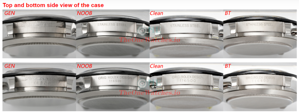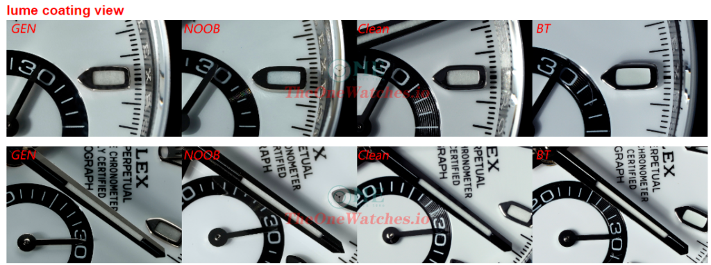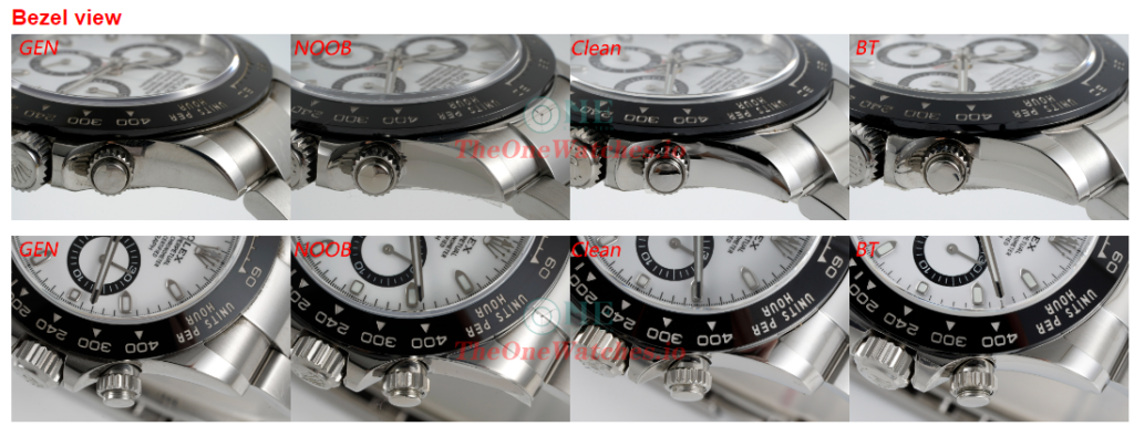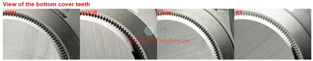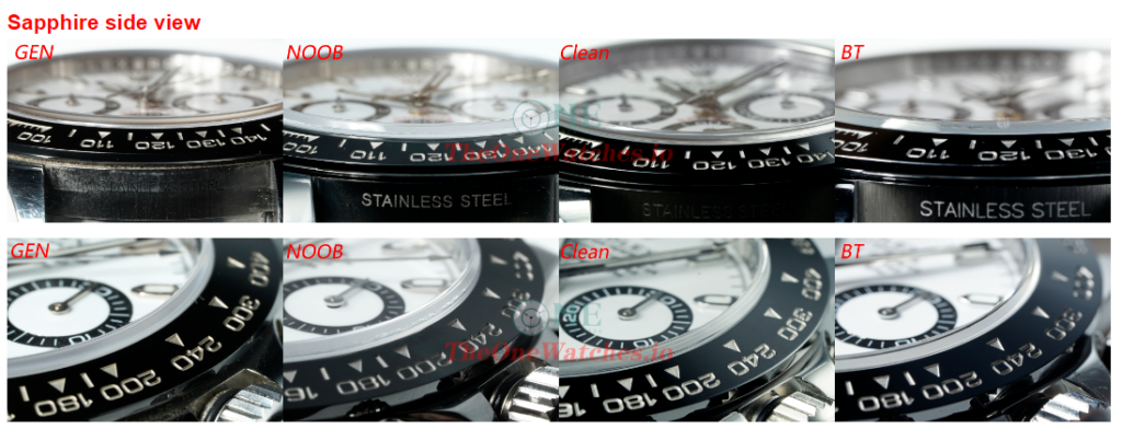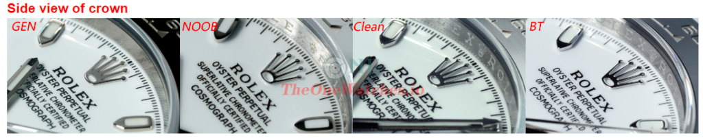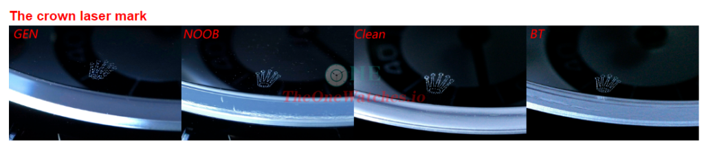 Oval of Noob Rolex logo is too big with thin shape. Clean looks the best in the whole details, BT also good.