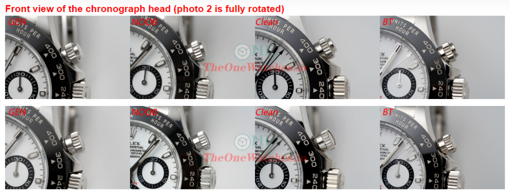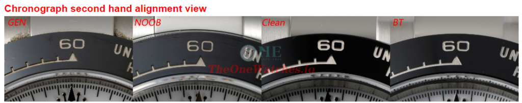 We can figure out from the photos that Gen chronograph second hand is a slightly off with the Inverted triangle on 12 position.