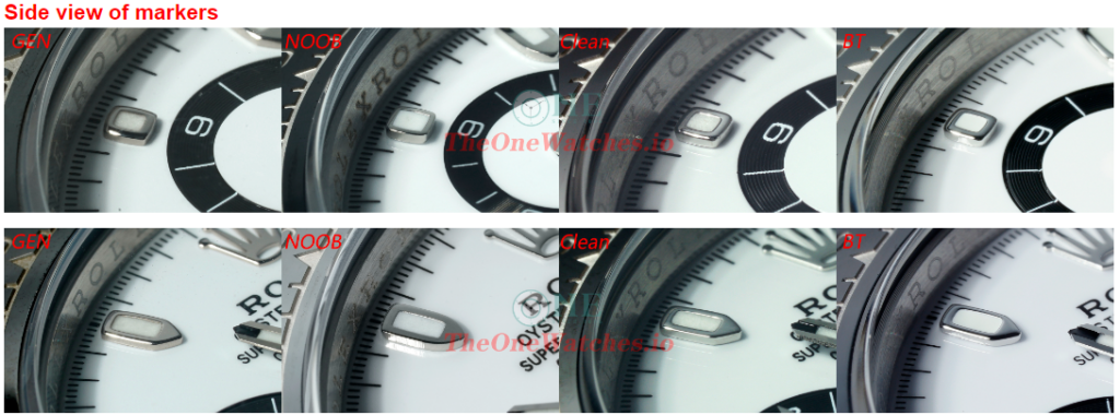 For the marker shape, Noob is over square, the side surface of dial hasn’t made smooth case kit lugs treatment.