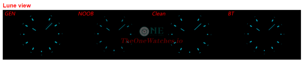 First, for the dial color, Noob is closer to Gen, nice color; clean a little darker, feels like grey and dull, maybe the glass is not so transparent;