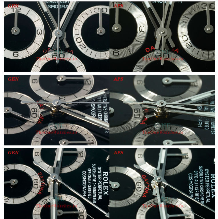 The length of the hands is fine, they are in line with the Gen, but the Middle Axis is slightly flawed, the centre is raised a little high and there are some burn marks.