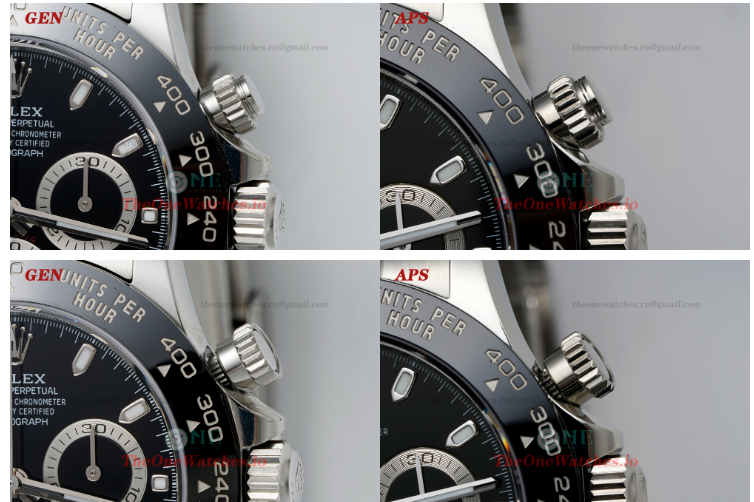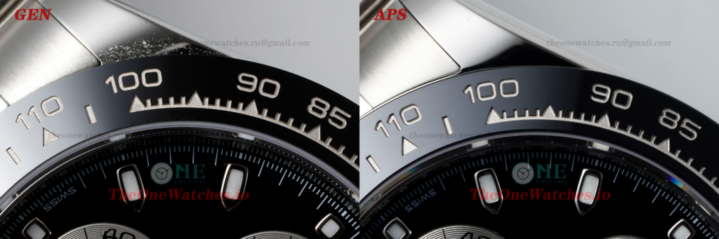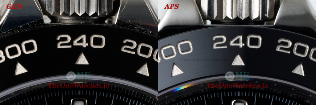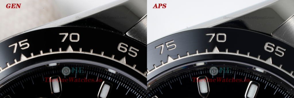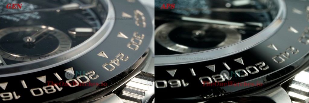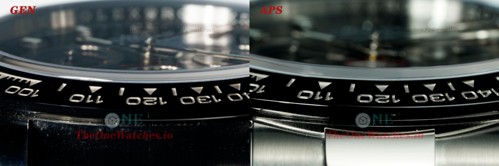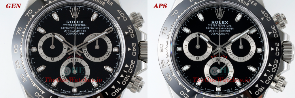 The APS bezel is also a clean factory replacement bezel, the best ceramic Daytona bezel on the market today, with the same frontal width and lateral height as the Gen.